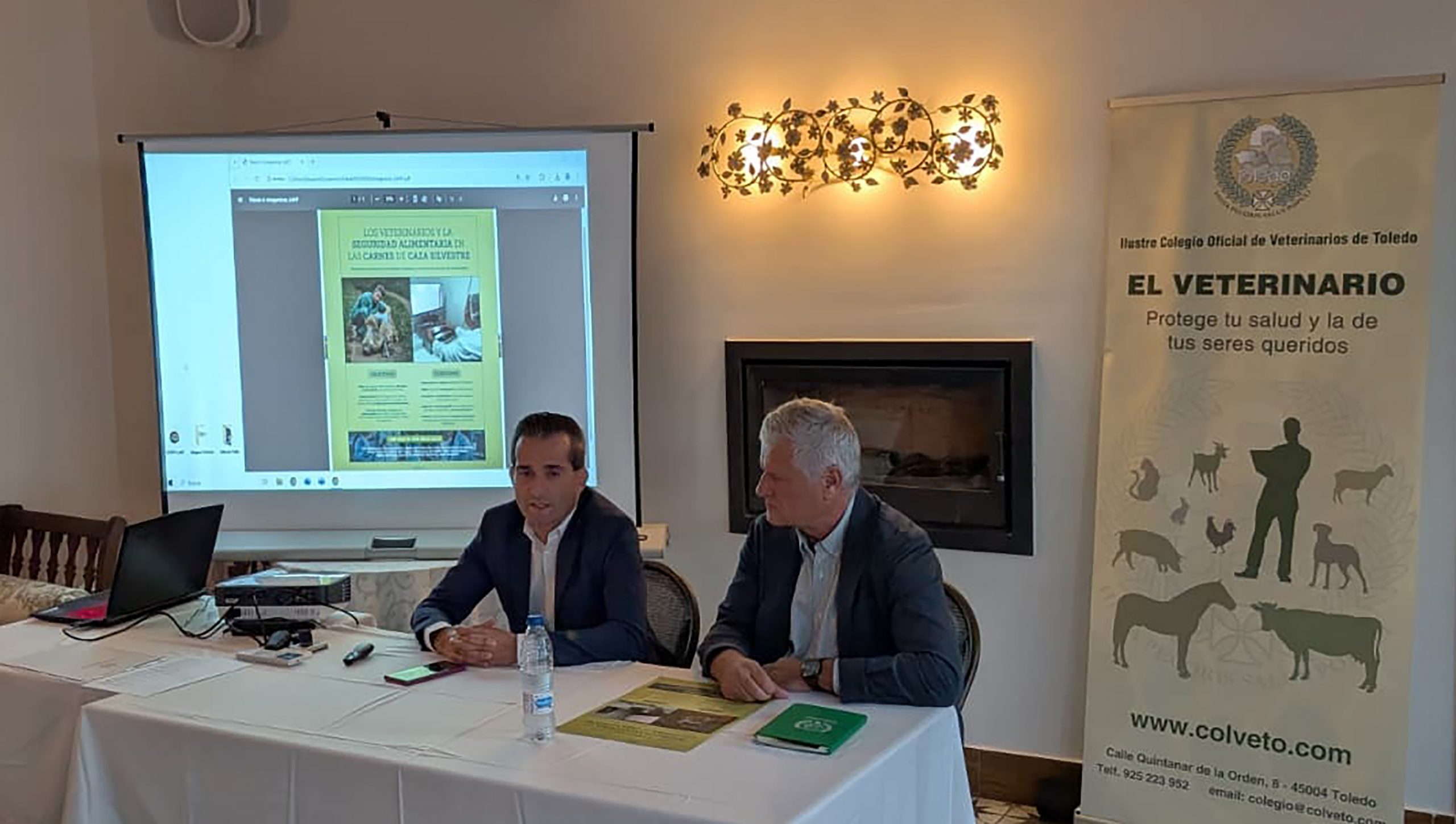 A continuación, los ponentes Miguel Collado Jiménez, coordinador de área de Servicio de Salud Pública de la Delegación Provincial de la Consejería de Sanidad de Toledo; Alfredo Peña Rey, veterinario con más de tres décadas de experiencia en actividades cinegéticas; y José Luis Moreno Hernández, veterinario oficial de Salud Pública, ofrecieron a los asistentes una visión actualizada de los procedimientos y responsabilidades que asumen los veterinarios en el marco de esta actividad, siempre con el objetivo de garantizar la seguridad alimentaria.