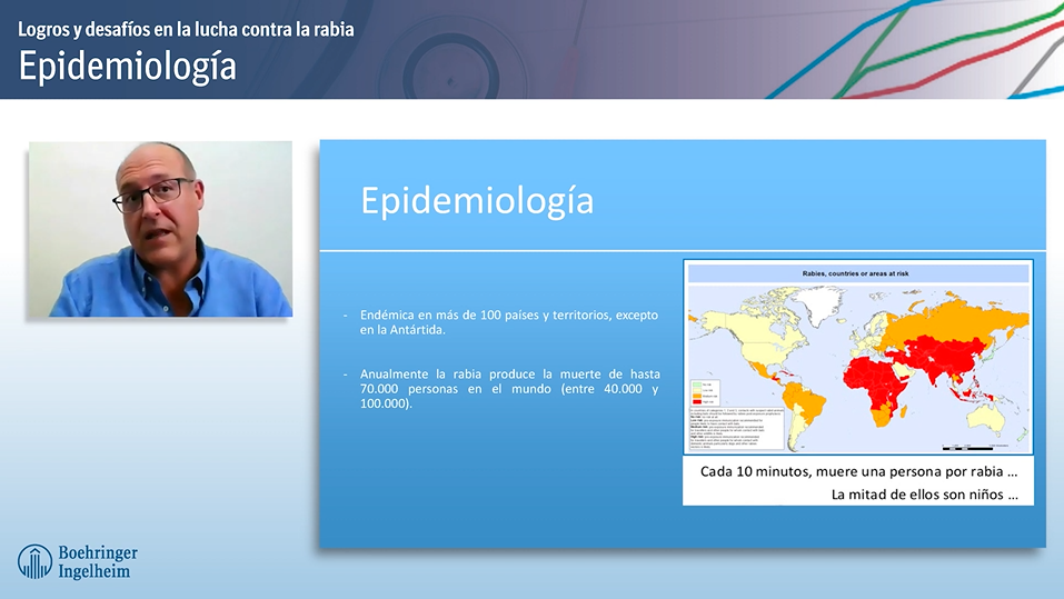Con motivo del Día Mundial de la Rabia, que se celebra cada 28 de septiembre, Boehringer Ingelheim ofrece, en voz del doctor Fernando Fariñas, referente mundial en inmunología, una serie de vídeos sobre la enfermedad con la que pretende concienciar de la importancia de su prevención. La compañía se muestra firme así en su compromiso con el veterinario, a quien entrega herramientas, soluciones y servicios de valor añadido que le permiten avanzar en su día a día. Concienciar a la sociedad en general de la importancia de su prevención es un punto esencial para erradicar la rabia, una zoonosis que se puede prevenir mediante la vacunación, campo en el que Boehringer Ingelheim aporta soluciones que permiten marcar la diferencia. En sus píldoras, el doctor Fariñas aborda aspectos de gran relevancia sobre la rabia.
