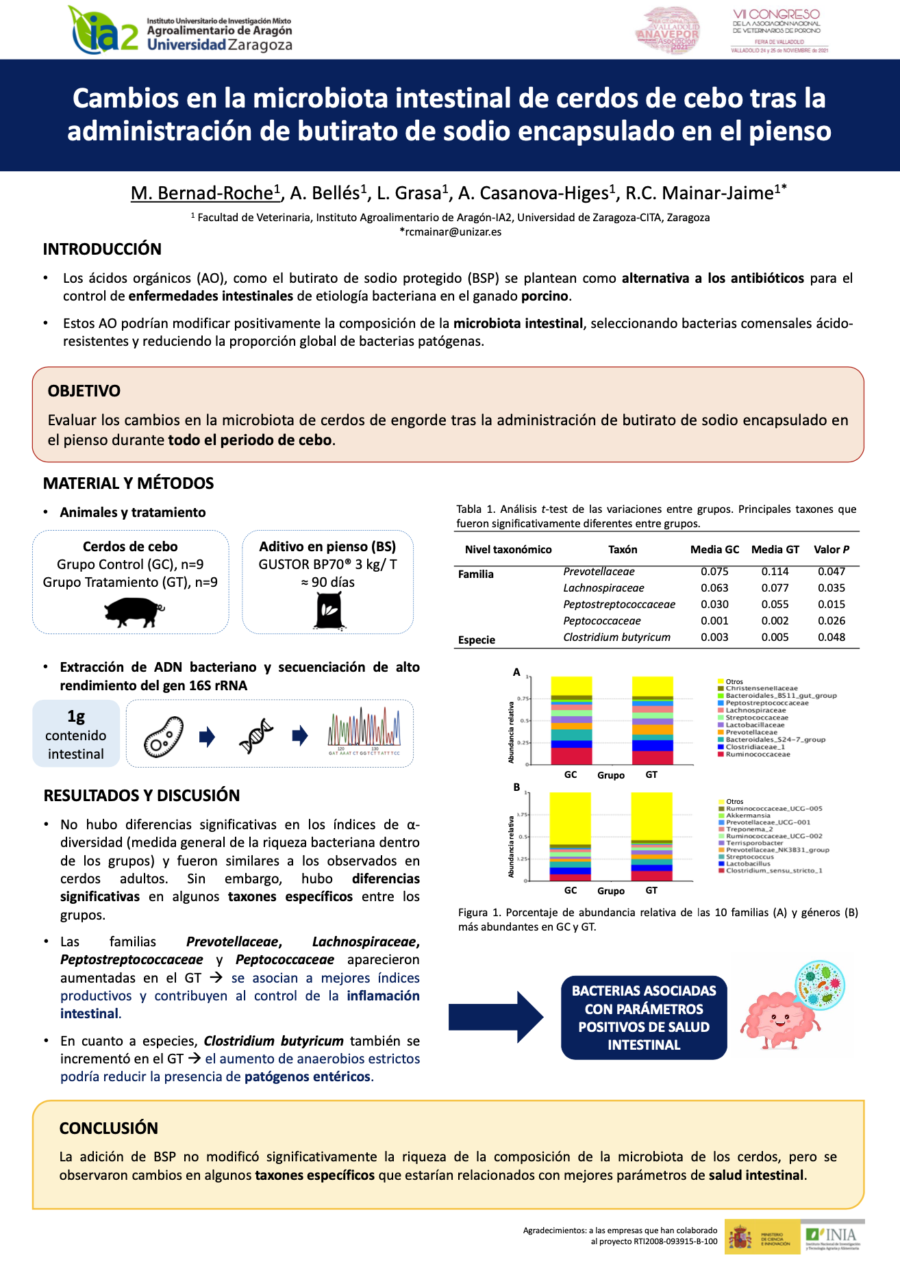 Cambios en la microbiota intestinal de cerdos de cebo tras la administración de butirato de sodio encapsulado en el pienso