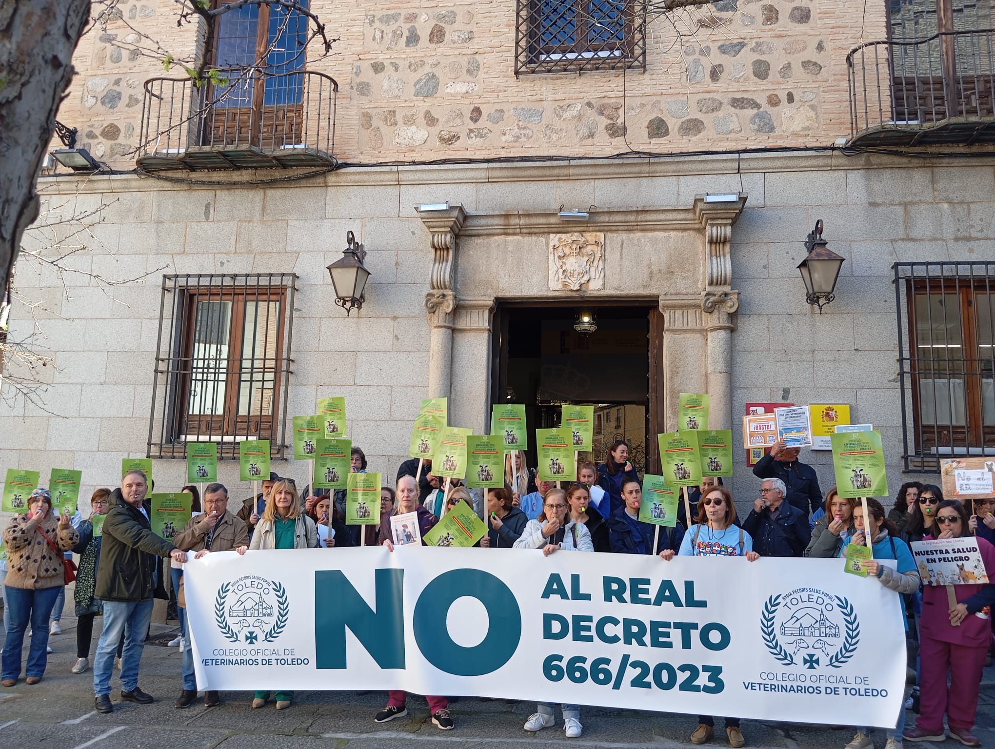 Cerca de un centenar de veterinarios se han unido a la concentración convocada hoy por el Colegio de Veterinarios de Toledo para expresar su rechazo al Real Decreto que regula la distribución, prescripción, dispensación y uso de medicamentos veterinarios.