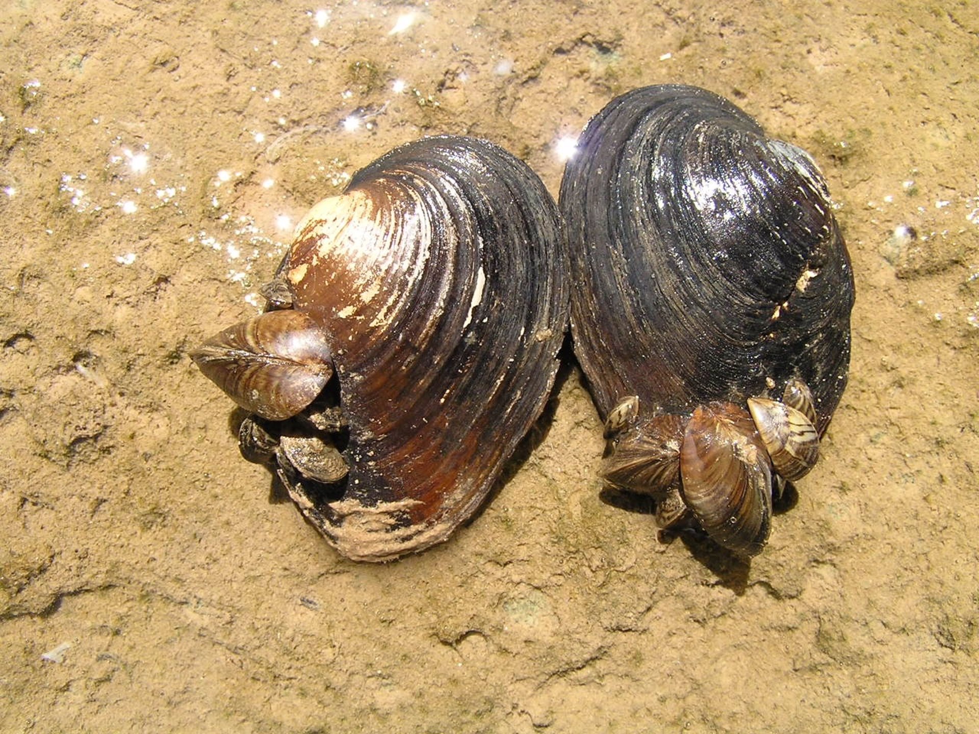 Un ejemplo de molusco exótico invasor, el más conocido por los daños que ocasiona en los ríos, lagos o embalses donde ha sido introducido, es el mejillón cebra, especie que tapiza los sustratos de los cauces fluviales, así como las estructuras, tuberías o canales para la conducción de aguas.