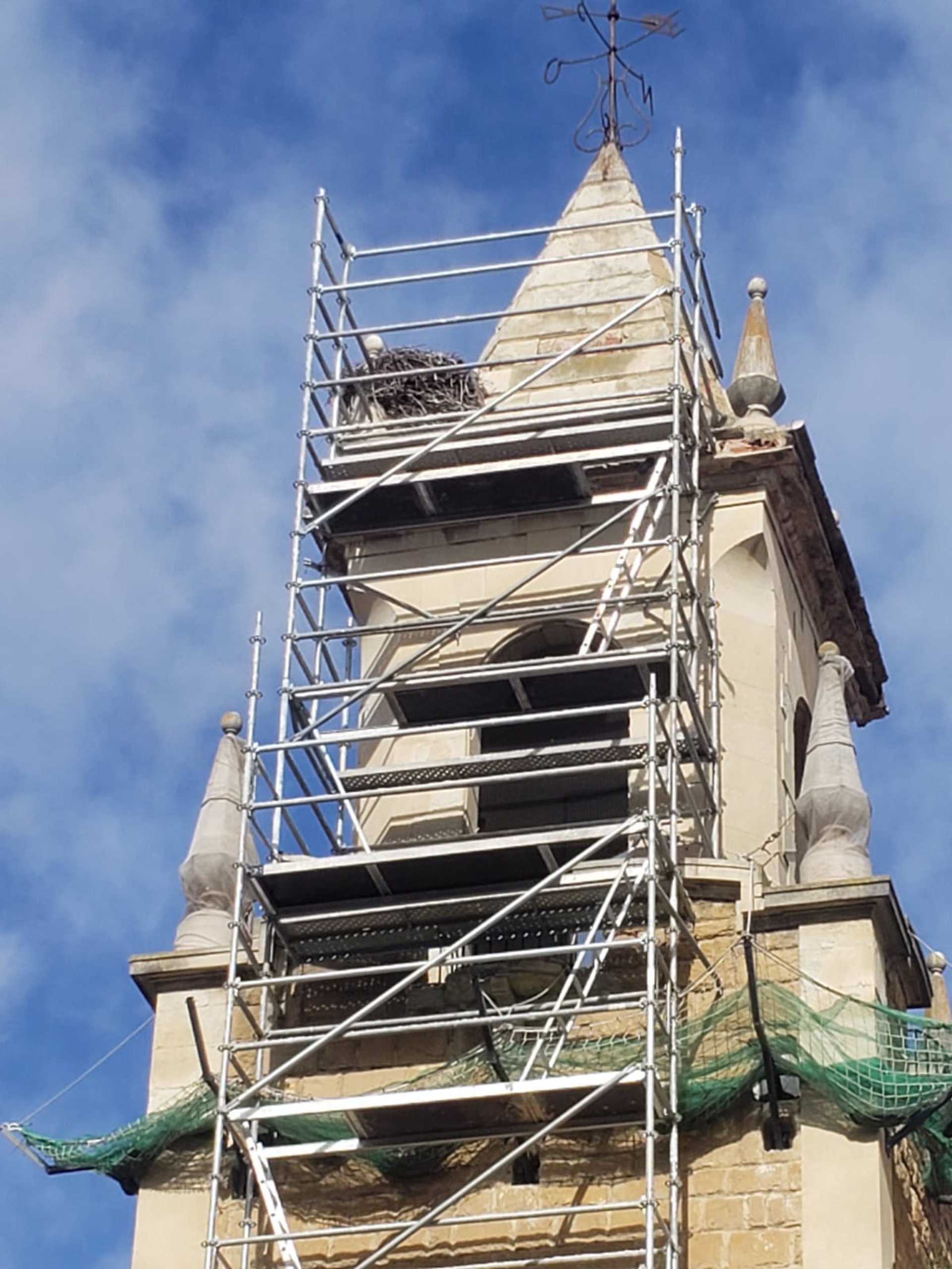 Vecinos del barrio de Las Huertas de Haro alertaron el pasado viernes por la tarde a Ecologistas en Acción de que un nido de cigüeñas estaba siendo gravemente perturbado por el montaje de unos andamios. El nido se situaba en el torreón del edificio Cid Paternina, ubicación actual de los juzgados del municipio, el cual pretende ser rehabilitado debido a su estado de deterioro.