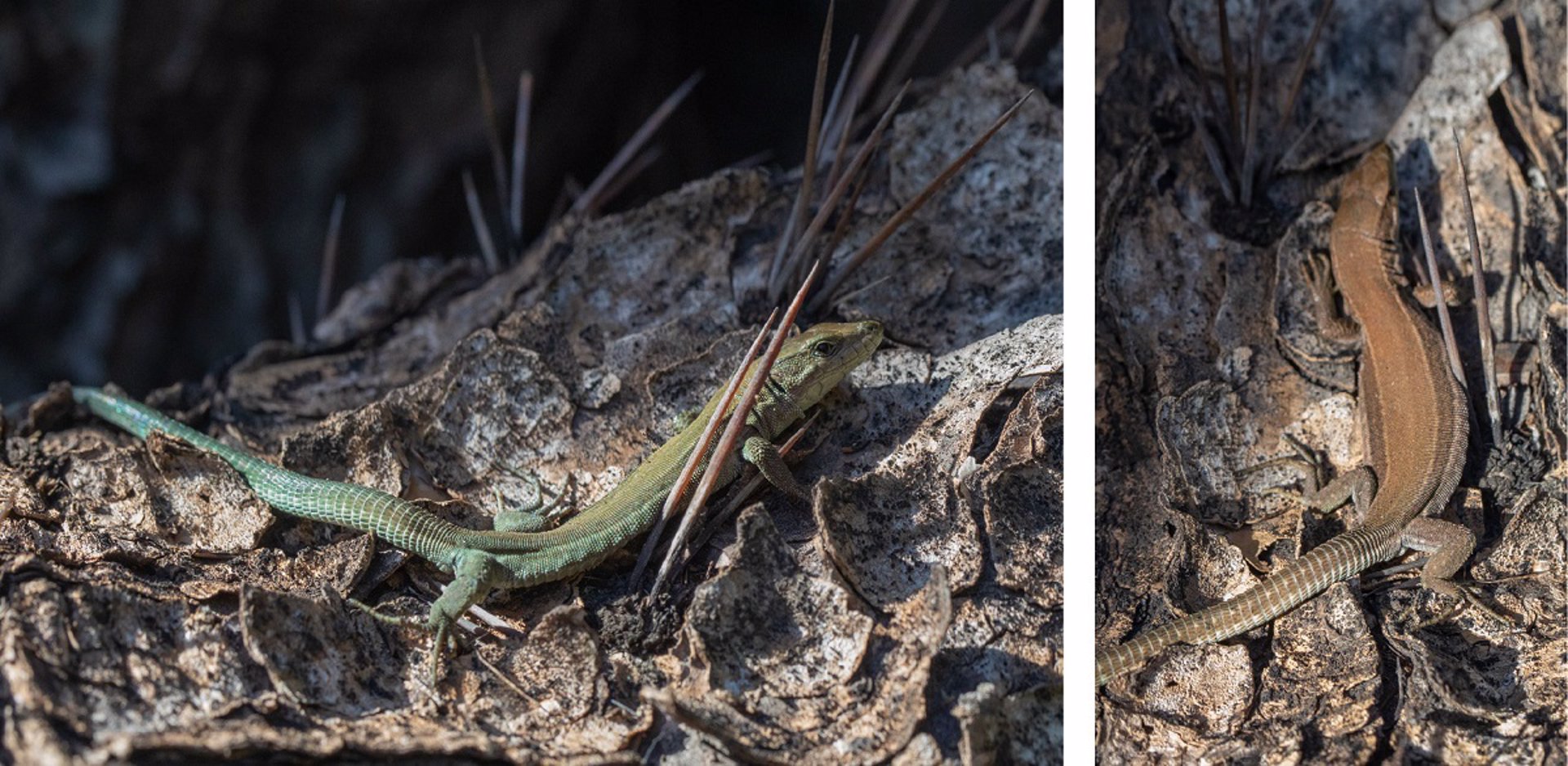 Podarcis liolepis, una especie común en el este de la Península Ibérica, muestra este fenómeno en su dorso, y por primera vez se ha evaluado cómo estos cambios cromáticos son percibidos por observadores con distintos sistemas de visión del color, como lagartijas, aves y humanos.