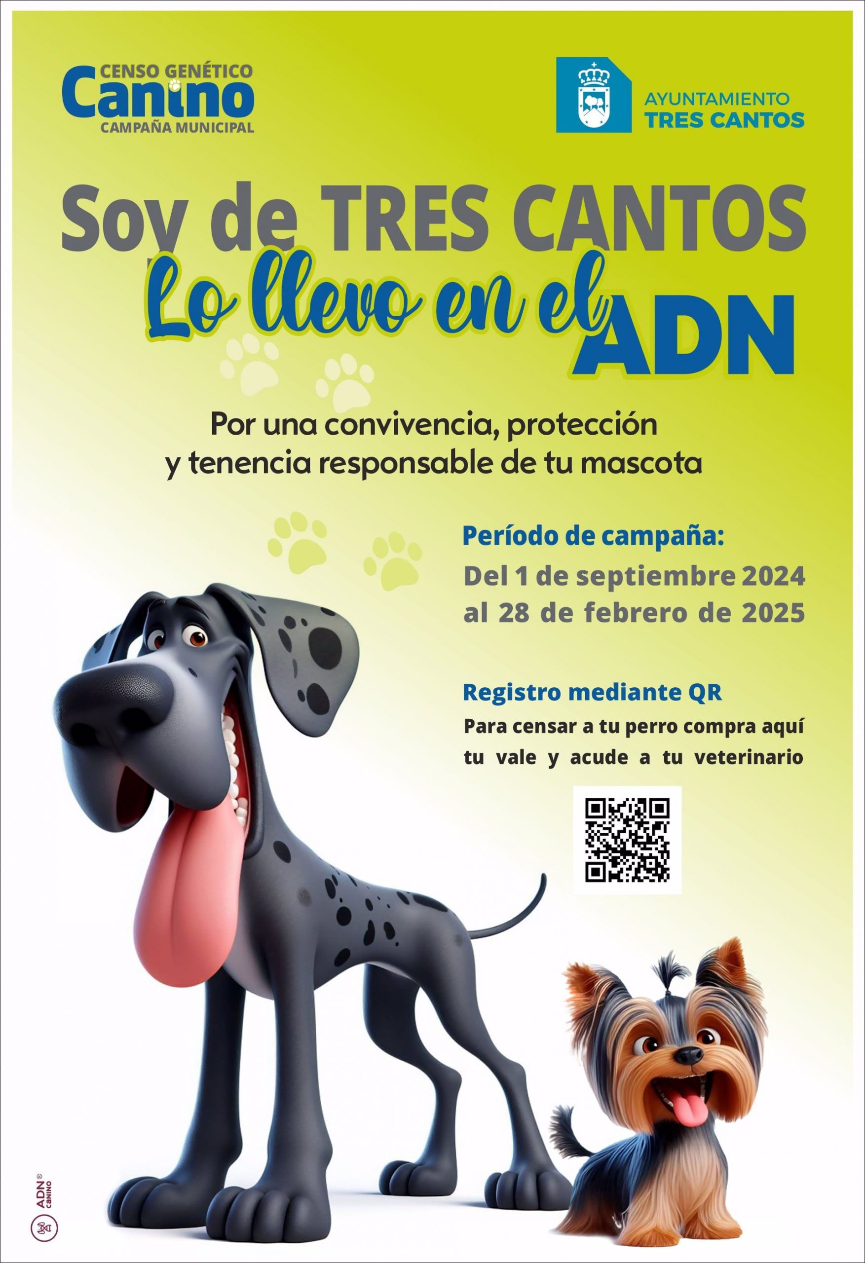 La Ordenanza Reguladora Municipal sobre tenencia responsable de animales del Ayuntamiento de Tres Cantos, que fue modificada el año pasado, recoge la obligatoriedad de que todos los perros del municipio estén registrados en un censo de ADN canino. Para ello, el Ayuntamiento ha autorizado a once clínicas veterinarias de la localidad que están realizando las pruebas de ADN, que tienen un coste de 40 euros para los propietarios.