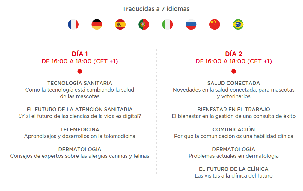 con entrevistas en directo con algunos de los principales expertos internacionales en salud de mascotas sobre las tendencias clave entorno a “La clínica y más allá”, cubriendo temas que van desde los casos clínicos y la gestión hasta la innovación en salud, bienestar y otras áreas que son esenciales para dirigir con éxito la práctica veterinaria de manera exitosa. La programación completa en directo está disponible a continuación: