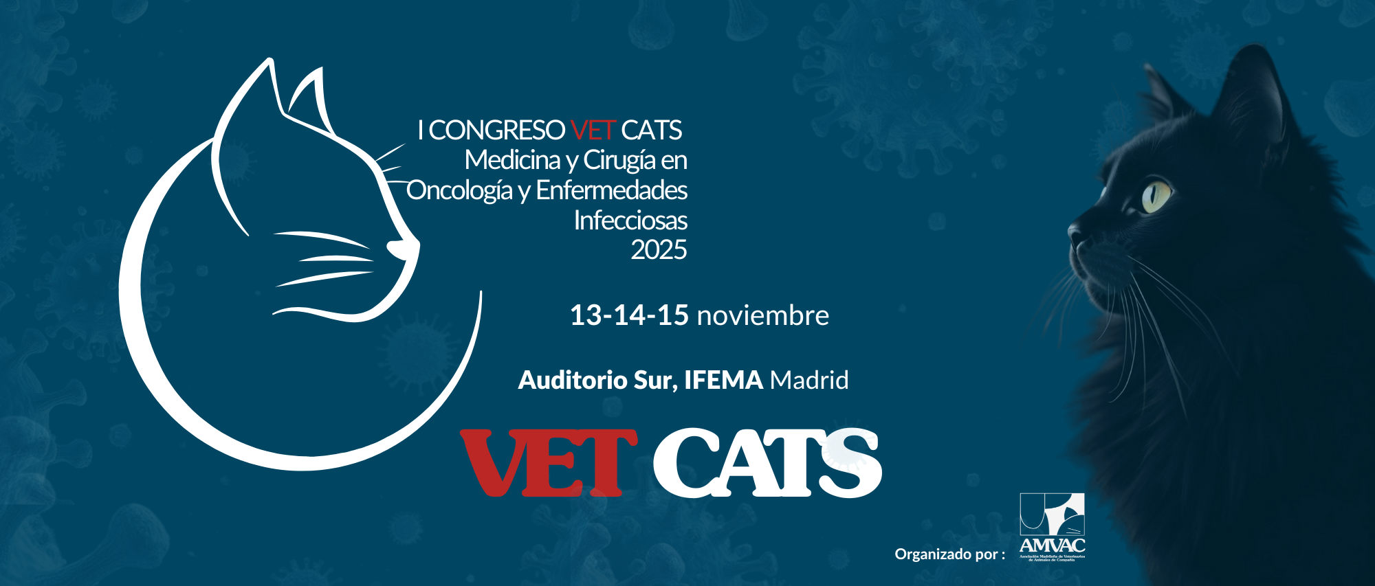 Desde la junta directiva de AMVAC, el comité organizador del congreso y el comité científico queremos animaros a que acudáis a este nuevo evento organizado por AMVAC. Ya sabéis que la asociación siempre realiza eventos aplicándole ese cariño especial que nos caracteriza: nos gusta que tanto veterinarios, asistentes veterinarios, como ponentes y casa comerciales, sientan el congreso como suyo y que se sientan como en su propia casa. Y recordad que no queremos que esto se quede solamente en un congreso, sino que sea el principio de la Comunidad VET CATS. Os esperamos el 13, 14 y 15 de noviembre!!!