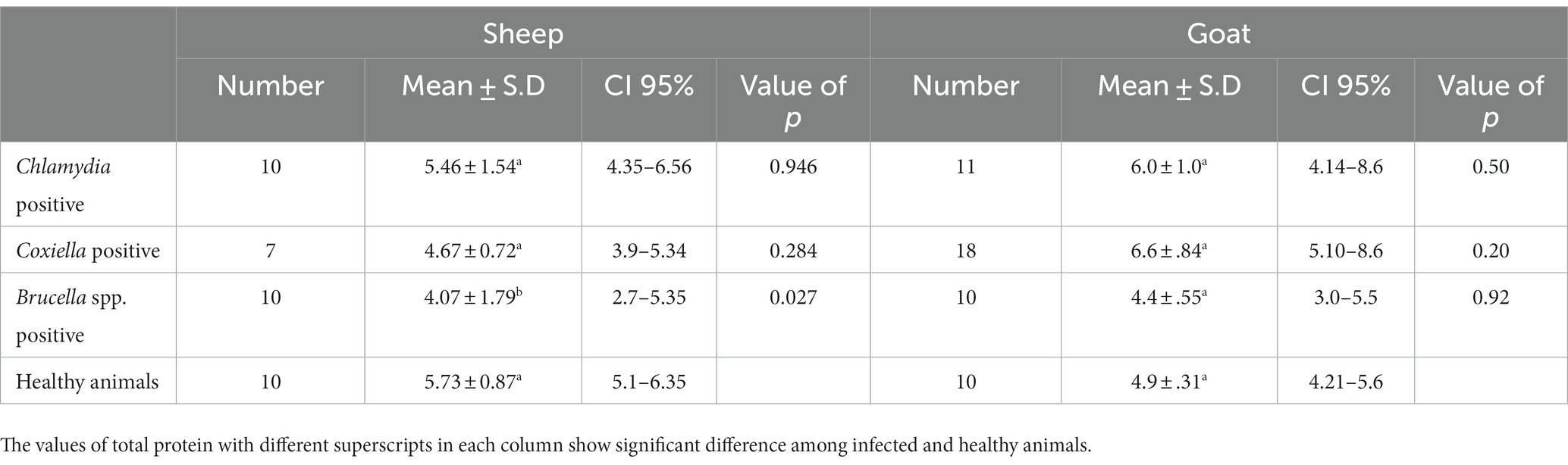 Las bacterias abortivas causan graves problemas de salud en pequeños rumiantes al dañar órganos vitales como el hígado, los riñones y el corazón (19). La lesión de estos órganos resulta en alteraciones bioquímicas, por ejemplo, la necrosis de los hepatocitos debido a Brucella spp. resulta en el aumento de ciertas enzimas hepáticas como ALT y AST y una disminución en las proteínas producidas por el hígado (20, 21); del mismo modo, un estudio realizado en Irak informó de los cambios bioquímicos debidos a la clamidiosis en las ovejas (22). Sin embargo, los datos son escasos sobre la alteración bioquímica causada por bacterias abortivas en pequeños rumiantes y necesita más investigación.