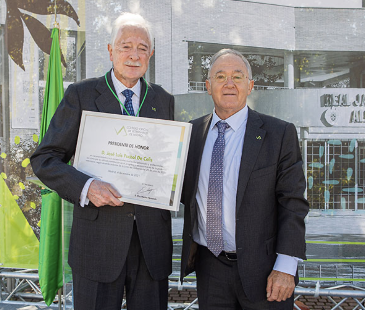 El momento más emotivo llegó de la mano de José Luis Puchol de Celis quien, visiblemente emocionado, recogía de manos de Felipe Vilas su acreditación como Presidente de Honor del Colegio, rodeado de familiares, amigos y compañeros, porque, como explicó Vilas,’ has desarrollado la clínica de animales de compañía en niveles de excelencia siempre con gran rigor científico y eso ha dado mucho prestigio a la profesión y además has formado a numerosos veterinarios que siempre han destacado después en este campo.