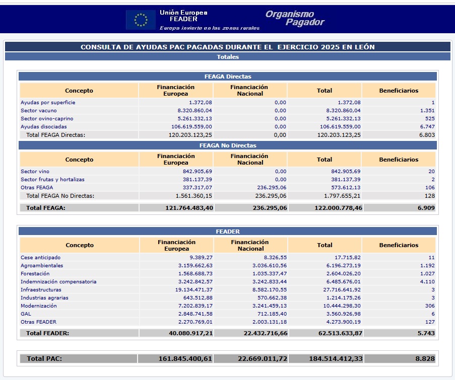 León recibió, en el ejercicio financiero de 2025, el mayor de la PAC, en ayudas directas, desde que existen estos fondosLeón recibió, en el ejercicio financiero de 2025, el mayor de la PAC, en ayudas directas, desde que existen estos fondos