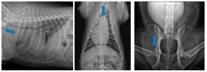 La paciente, una perra Bóxer hembra no castrada de 6 años, fue atendida por presentar un cuadro de cojera de la extremidad posterior derecha de una semana de duración que había mejorado parcialmente con el tratamiento con antiinflamatorios no esteroideos, pero que en los últimos dos días había empeorado y también mostraba tendencia a caminar en círculos y deambular. La presencia de dolor a la extensión de la cadera derecha y a la palpación de la región lumbar craneal fueron las únicas alteraciones en la exploración física general. En el examen neurológico se observaron deficiencias compatibles con una lesión en prosencéfalo derecho: marcha en círculos hacia la derecha, retraso en las reacciones posturales en el lado
