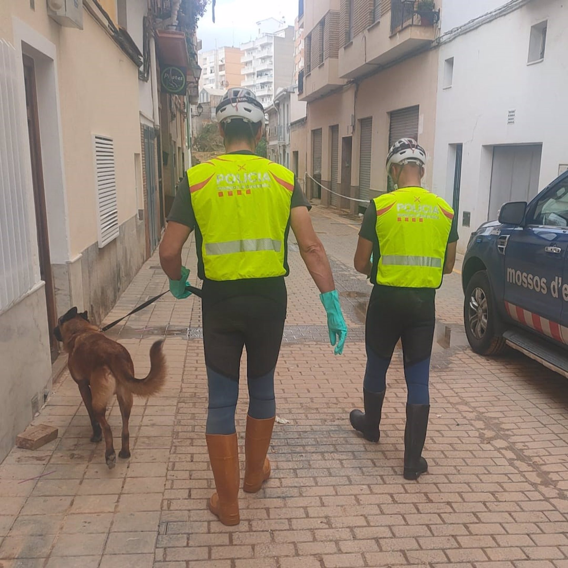 Los Mossos d’Esquadra enviaron este miércoles por la noche a la Comunidad Valenciana dos vehículos con tres perros especializados en la búsqueda de personas desaparecidas para participar en el dispositivo establecido en la zona tras los efectos de la DANA.