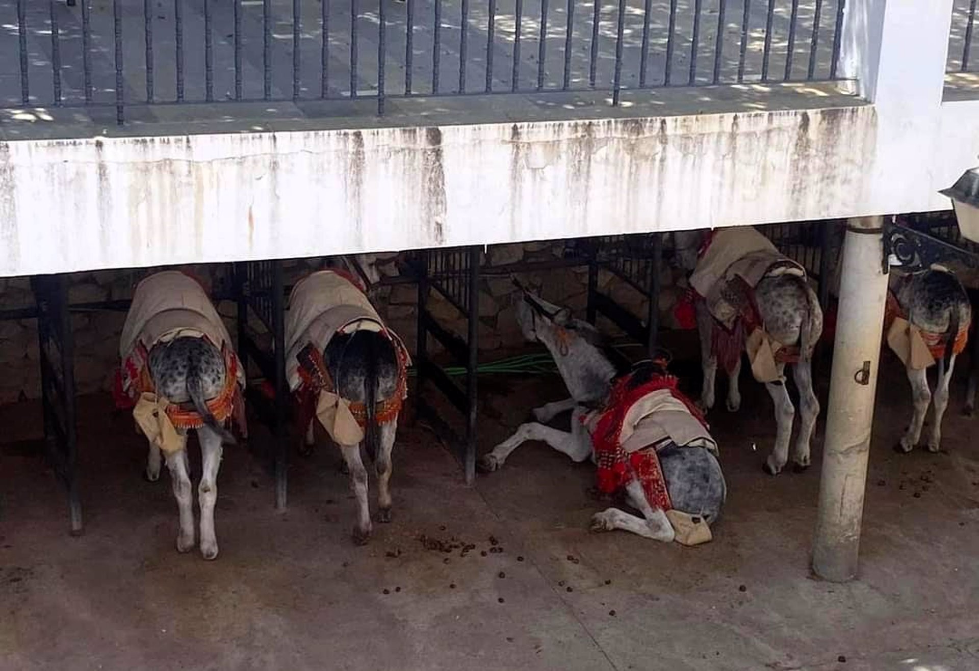 Pacma ha señalado que en varias ocasiones no se ha proporcionado sombra adecuada, ni se han observado recipientes con agua para los burros. «Además, los animales continúan atados directamente a una estructura metálica mediante la cabezada, limitando su libertad de movimiento. Los arrieros afirman que la finalidad de esta atadura es evitar las agresiones entre los propios animales», añaden.