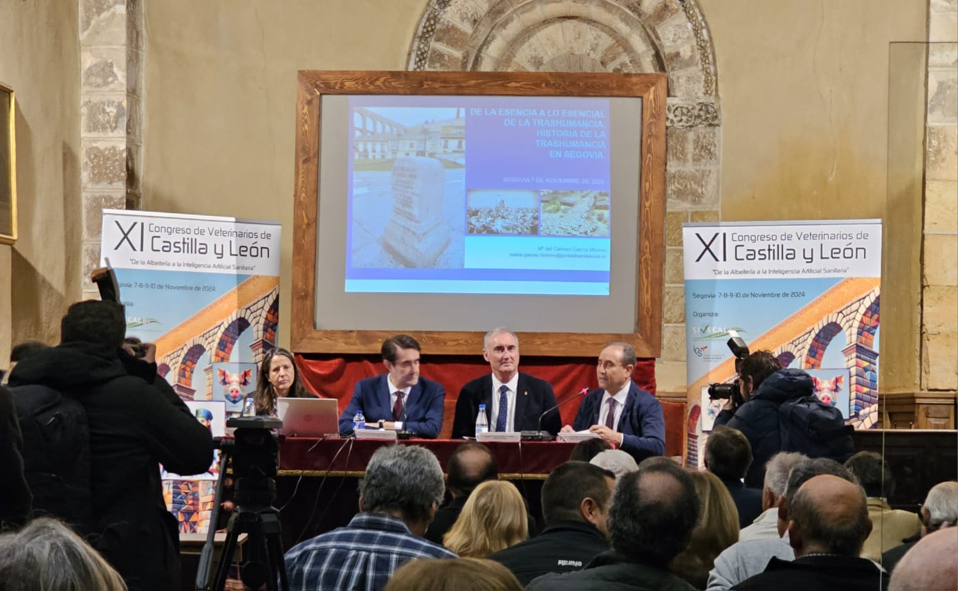 El XI Congreso de Veterinarios de Castilla y León “De la albeitería a la Inteligencia artificial Sanitaria” que se celebra en la ciudad de Segovia del 8 al 10 de noviembre, ha dado su pistoletazo de salida en el aula de la Real Academia de Arte e Historia de San Quirce, con una conferencia abierta a toda la ciudadanía, “De la esencia a lo esencial de la trashumancia en Segovia”.