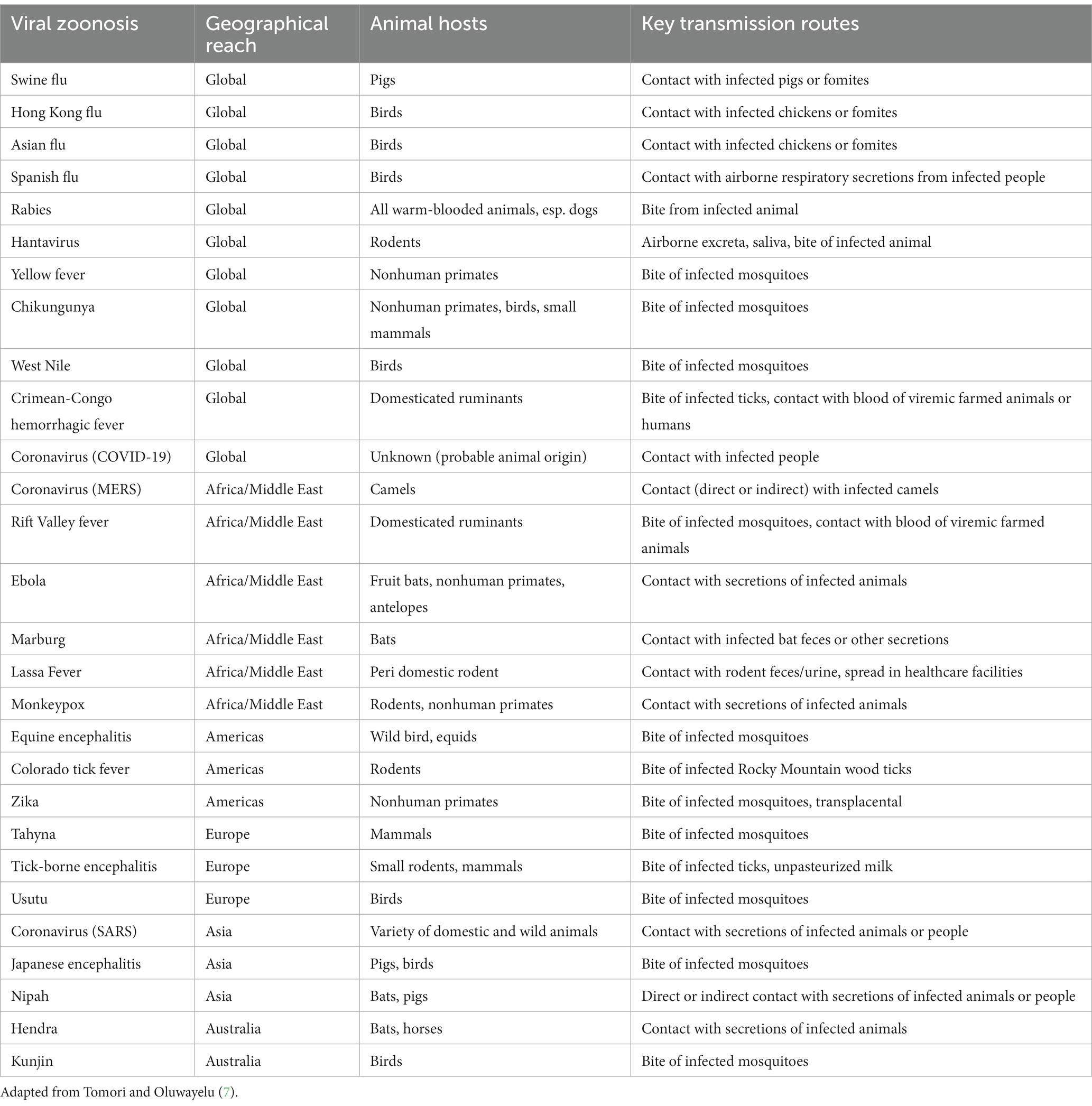 - Tomori, O, and Oluwayelu, DO. Domestic animals as potential reservoirs of zoonotic viral diseases. Annu Rev Anim Biosci. (2023) 11:33–55. doi: 10.1146/annurev-animal-062922-060125