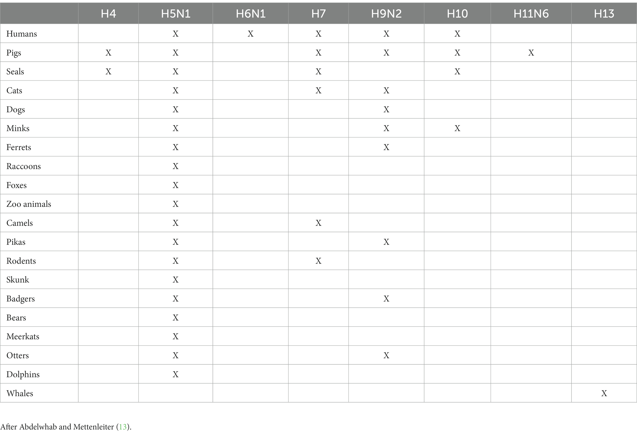 - Abdelwhab, EM, and Mettenleiter, TC. Zoonotic animal influenza virus and potential mixing vessel hosts. Viruses. (2023) 15:980. doi: 10.3390/v15040980