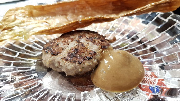 Hamburguesas de cordero, tofe de cebolla y láminas de puerro crujientes