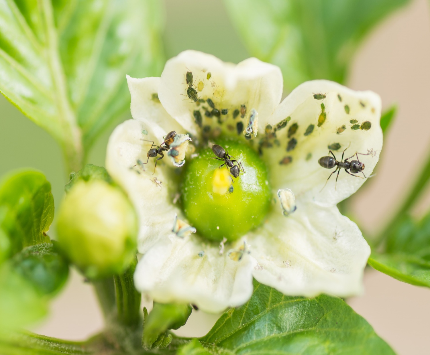 Para ello, los investigadores han llevado a cabo experimentos en plantas de pimiento infestadas con el pulgón Aphis gossypii Glover en cuatro invernaderos con la presencia natural de la hormiga Tapinoma ibericum Santschi en tres períodos y dos años diferentes.