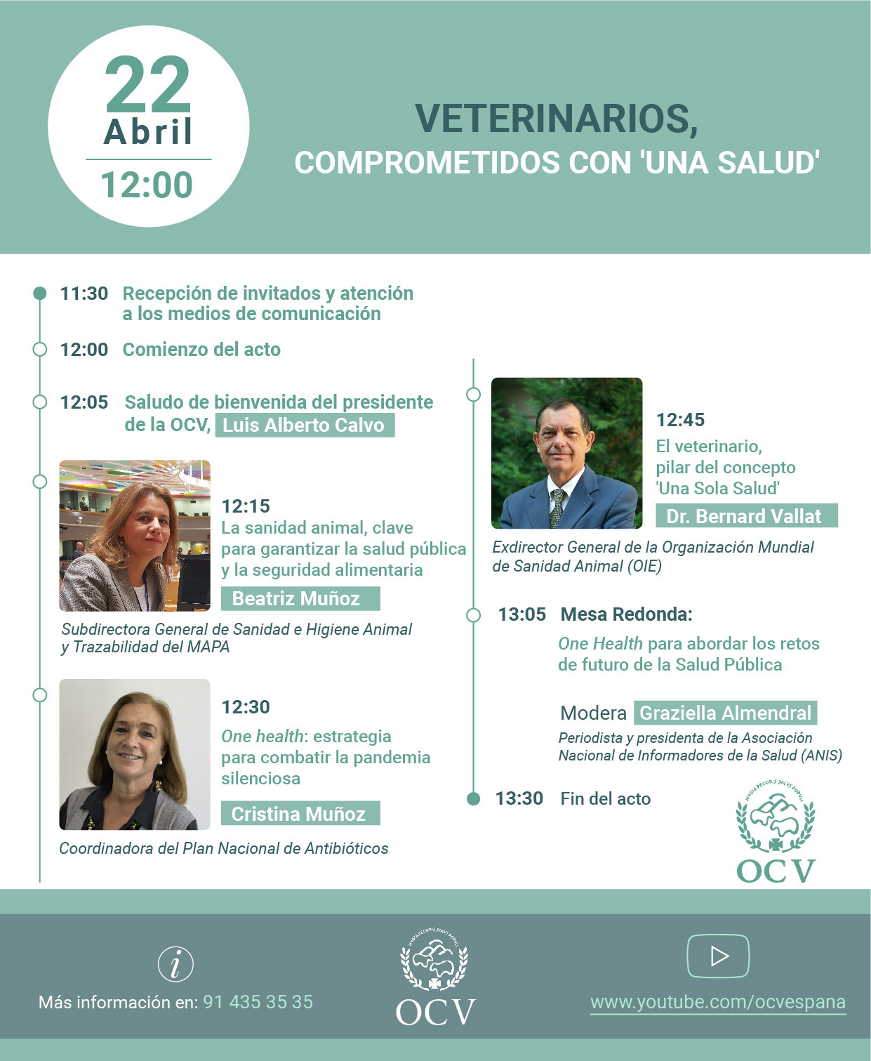 Con motivo del Día Mundial de la Veterinaria, que se conmemora cada año el último sábado de abril, la OCV rinde un homenaje a los veterinarios en un acto que tendrá lugar el próximo viernes 22 de abril, y que será retransmitido en directo en el canal de YouTube de la organización.