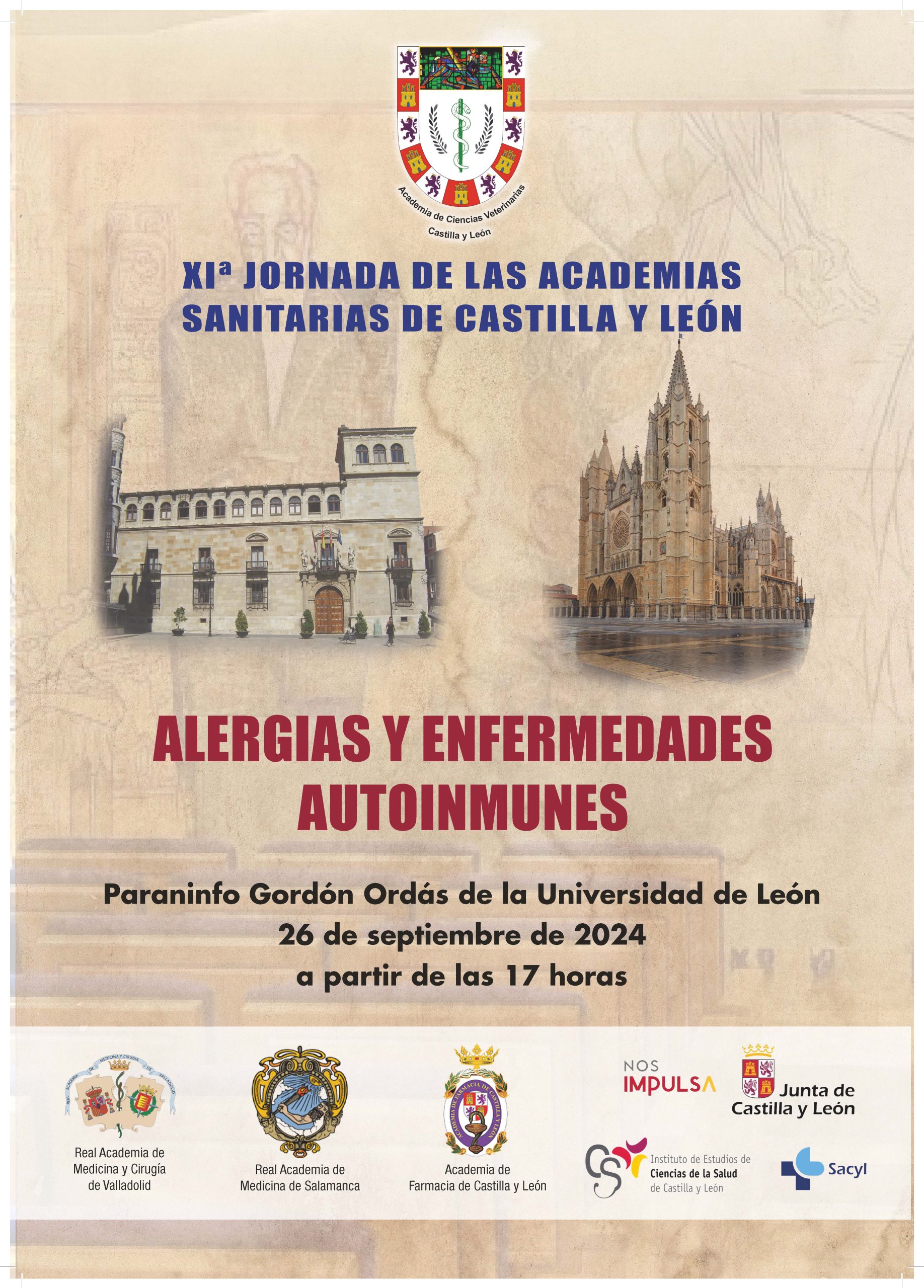 Elías F. Rodríguez Ferri, Presidente de la Academia de Ciencias Veterinarias de Castilla y León, tiene el honor de Invitar a Vd. a la XIª Jornada de las Academias Sanitarias de Castilla y León (Real Academia de Medicina y Cirugía de Valladolid, Real Academia de Medicina de Salamanca,  Academia de Farmacia de Castilla y León, y Academia de Ciencias Veterinarias de Castilla y León) en cuyo curso se desarrollarán cuatro ponencias sobre “Alergias  y Enfermedades Autoinmunes”